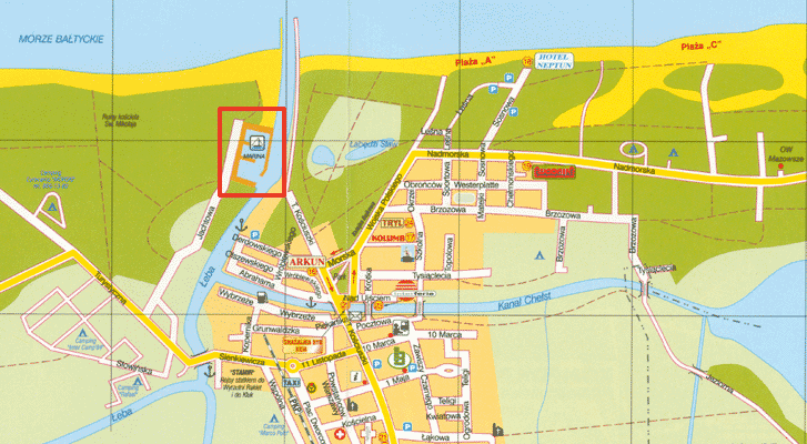 Mob. 0609 45 73 25 | | Mapa okolic |  | | Mapa miasta |  | | Zakwaterowanie | Zakwaterowanie i wyżywienie: 55-60 zł osobo/doba - restauracja i hotel Marina, Ośrodek "Krzysztof", Ośrodek "Dolzamet", pensjonat "Krokodyl" / 100-150m. od Portu Jachtowego. |